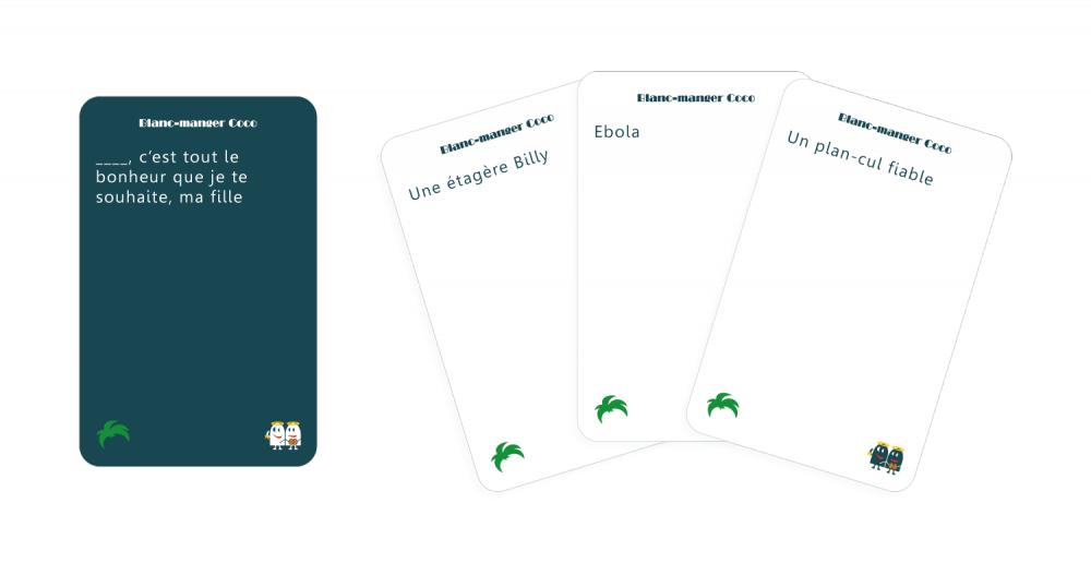 Le jeu blanc manger coco apporte fous rires et ambiance décalée grâce à ses nombreuses cartes à combiner pour des réponses drôles, imprévisibles et totalement loufoques.