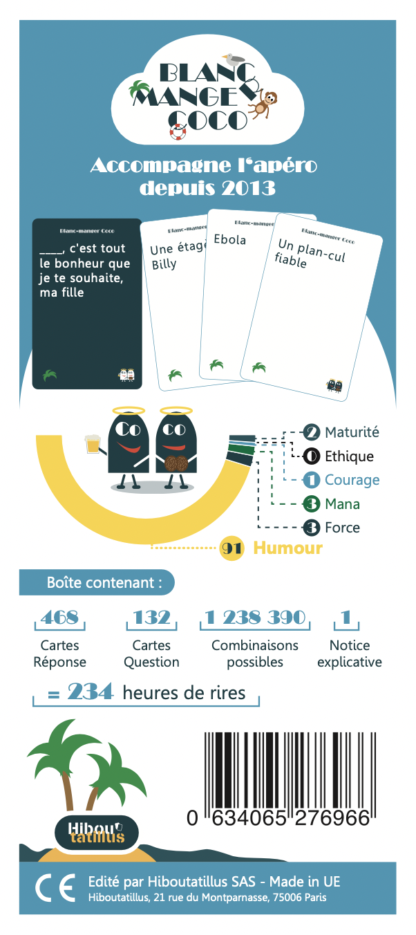 Le format simple, les règles accessibles en quelques secondes et le rythme rapide rendent cette boîte idéale pour une soirée sans prise de tête. Que ce soit pour animer un anniversaire, un voyage entre amis ou simplement passer un bon moment un vendredi soir, Blanc Manger Coco réussit toujours à installer une ambiance détendue. On sent que le jeu a été créé pour générer un maximum d’échanges, de fous rires et de petites piques amicales.