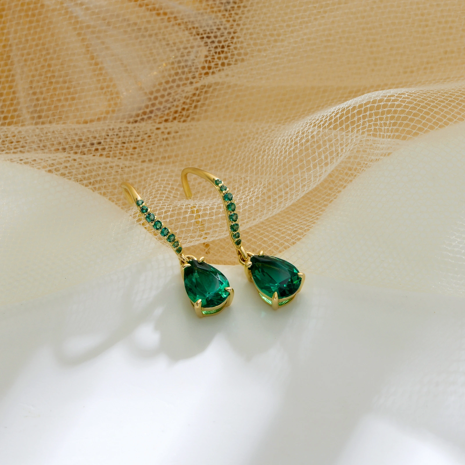 Présentation des boucles d’oreille émeraude en or 10K pendantes