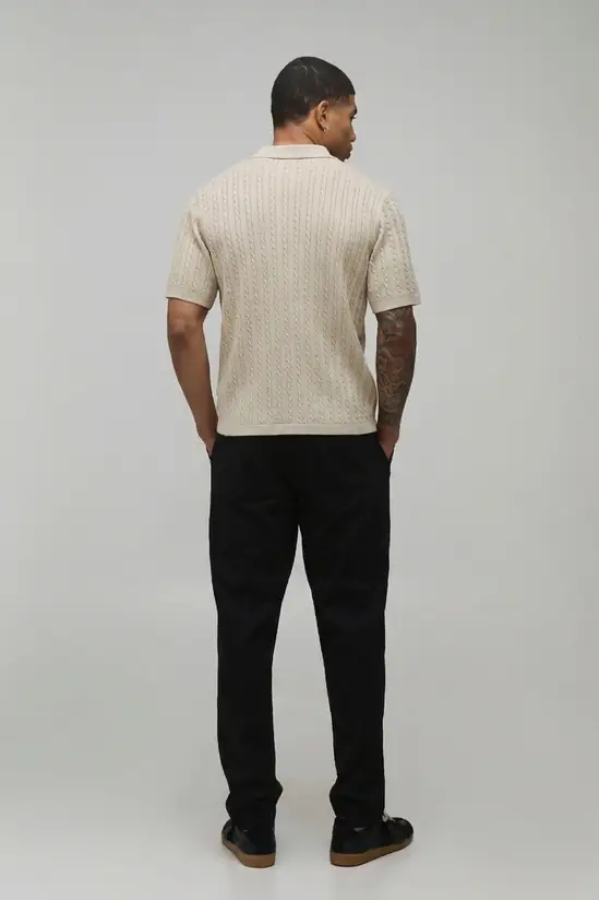 La chemise tricotée à manche courte BoohooMAN associe une coupe boxy fit à une maille cable soft touch texturée. Son coloris stone et sa silhouette moderne en font une pièce facile à porter pour un look casual soigné.