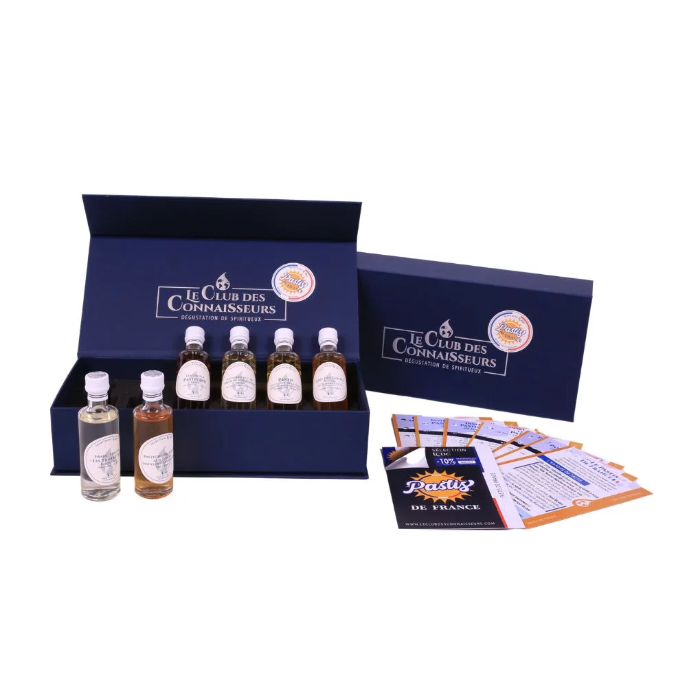 Le coffret dégustation pastis du Club des Connaisseurs met à l’honneur un savoir-faire emblématique du sud de la France. Présenté dans un écrin élégant, il réunit des flacons en verre de 40 ml, embouteillés et étiquetés avec soin afin de préserver toute l’authenticité des saveurs. Décliné en formats 3, 6 ou 12 flacons ainsi que le Grand Coffret, chaque coffret dégustation pastis propose une immersion dans la diversité de ce spiritueux anisé : recettes traditionnelles de Provence, pastis artisanaux aux herbes et épices, ou créations contemporaines aux notes raffinées. Chaque coffret est accompagné de fiches techniques et de dégustation permettant de mieux comprendre l’histoire, les méthodes de production et les subtilités aromatiques de chaque recette. Un coffret dégustation pastis idéal pour apprendre, comparer et partager une expérience typiquement méditerranéenne.
