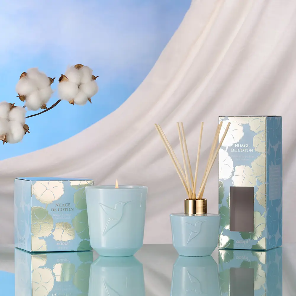 Diffuseur adopt Nuage de coton, idéal pour créer une ambiance douce, cocooning et apaisante dans votre intérieur grâce à sa fragrance légère et raffinée.