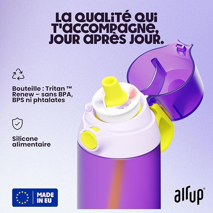 Le pack air up gourde violette présente plusieurs caractéristiques techniques pensées pour un usage quotidien :