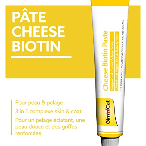 Les pâtes pour le pelage GimCat sont spécialement formulées pour soutenir la beauté et la santé du chat au quotidien. Cette friandise enrichie en biotine, zinc et huile de lin favorise un pelage brillant, une peau saine et des griffes solides. Avec sa texture onctueuse et son goût savoureux au fromage, elle est particulièrement appétente et facile à donner, que ce soit directement au tube, sur la patte ou mélangée aux repas. Les pates pour le pelage contribuent aussi au confort digestif en aidant à limiter la formation de boules de poils. Un complément gourmand et bénéfique qui associe plaisir et bien-être pour tous les félins.