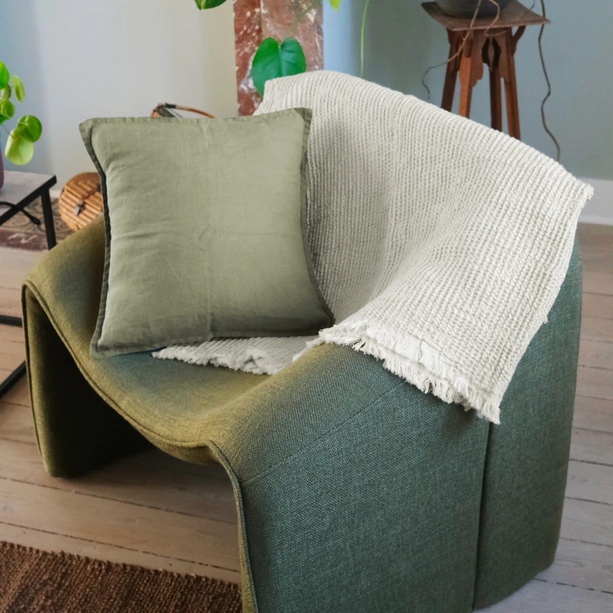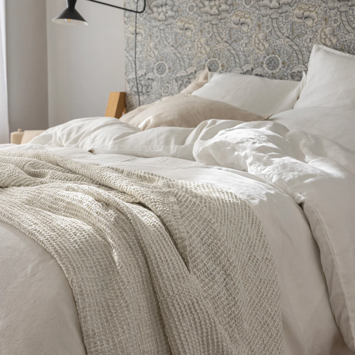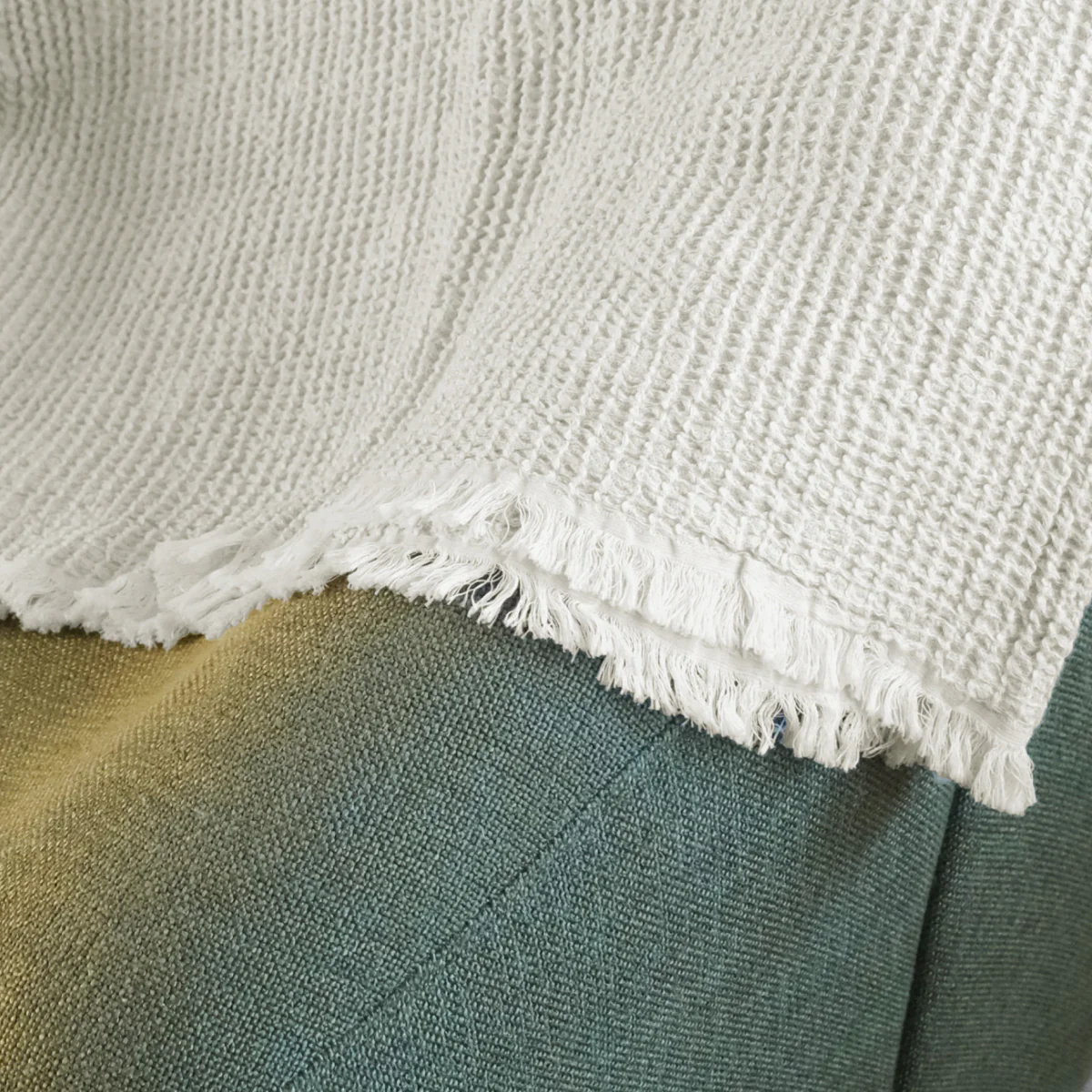 Les coloris disponibles pour cette collection sont étudiés pour s’intégrer dans les intérieurs les plus variés, des blancs crème aux gris minéraux en passant par des ocres chaleureux. Chaque teinte est choisie pour souligner la structure alvéolaire du tissu. La densité du coton assure également une absorption acoustique bienvenue, contribuant à l’atmosphère feutrée de votre sanctuaire de repos. Tout dans ce plaid esprit nid d’abeille a été imaginé pour satisfaire vos sens, du regard porté sur le tissage à la sensation de chaleur respirante ressentie lors de son utilisation.