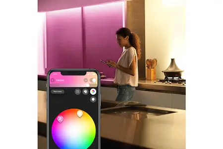 Le ruban LED Philips Hue Lightstrip est la solution parfaite pour créer une ambiance sur mesure dans la maison. Flexible, découpable et ultra-lumineux, il se colle facilement derrière un meuble, sous un plan de travail ou autour d’un téléviseur pour sublimer vos espaces avec une lumière d’ambiance connectée.