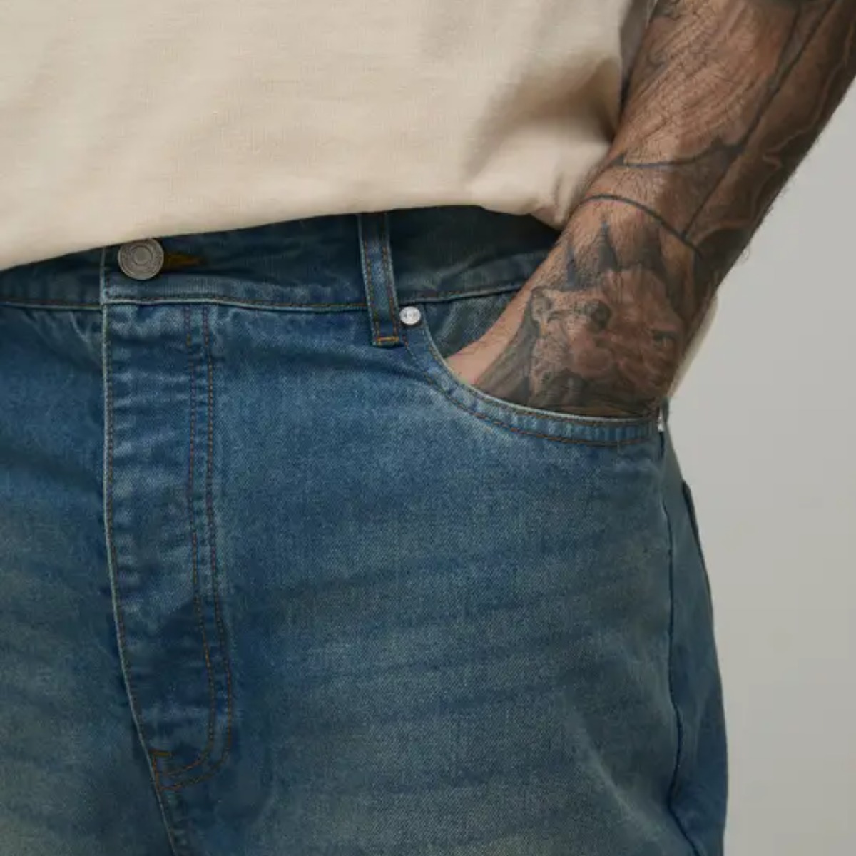 Choisir un short en jean long, c’est opter pour une coupe différente du short classique. La coupe Tall longline offre une longueur étendue qui modifie les proportions et apporte une silhouette plus moderne.