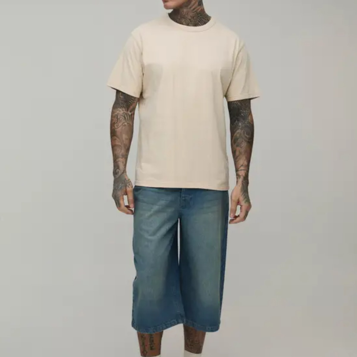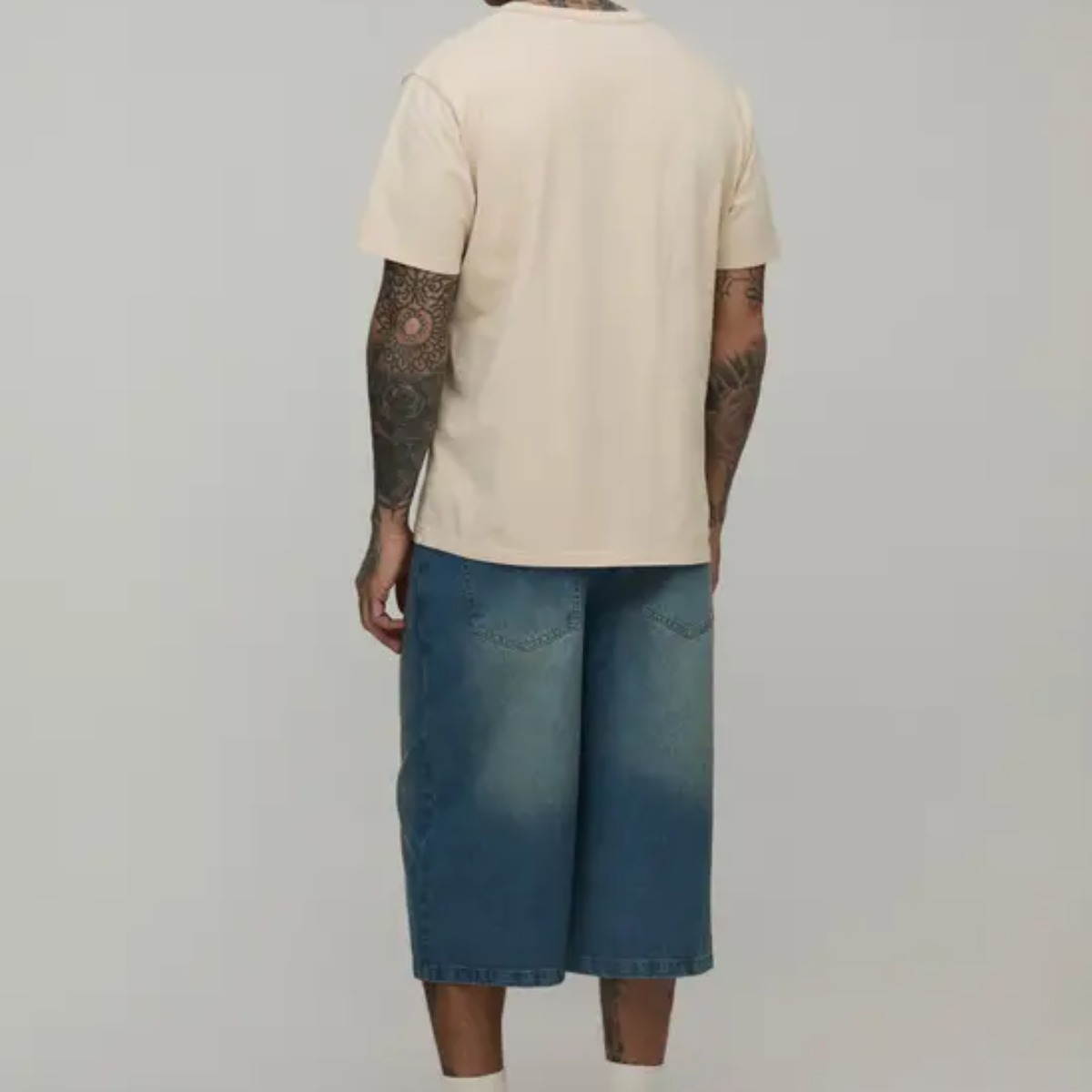 Le short en jean long peut être accompagné d’un t-shirt oversize pour créer une tenue complète. Il peut aussi être associé à des sneakers pour renforcer l’allure casual.