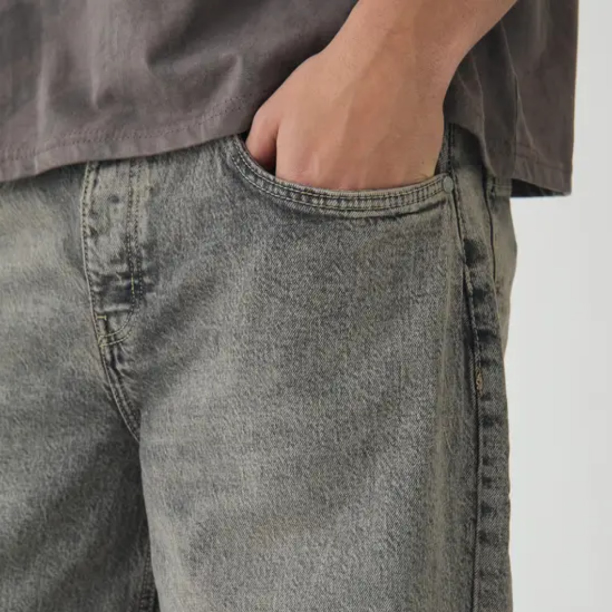 Le jean lavé à la pierre décontracté se porte facilement avec un t-shirt basique ou un sweat. Pour un look streetwear, il peut être associé à des baskets et une veste légère.