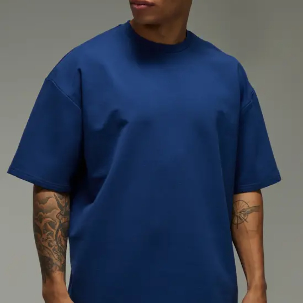 Comparé à un t-shirt standard plus léger, le t shirt oversize bleu premium active en 330gsm offre une épaisseur supérieure et un tombé plus structuré. Sa coupe oversized le différencie également d’un modèle ajusté plus classique.