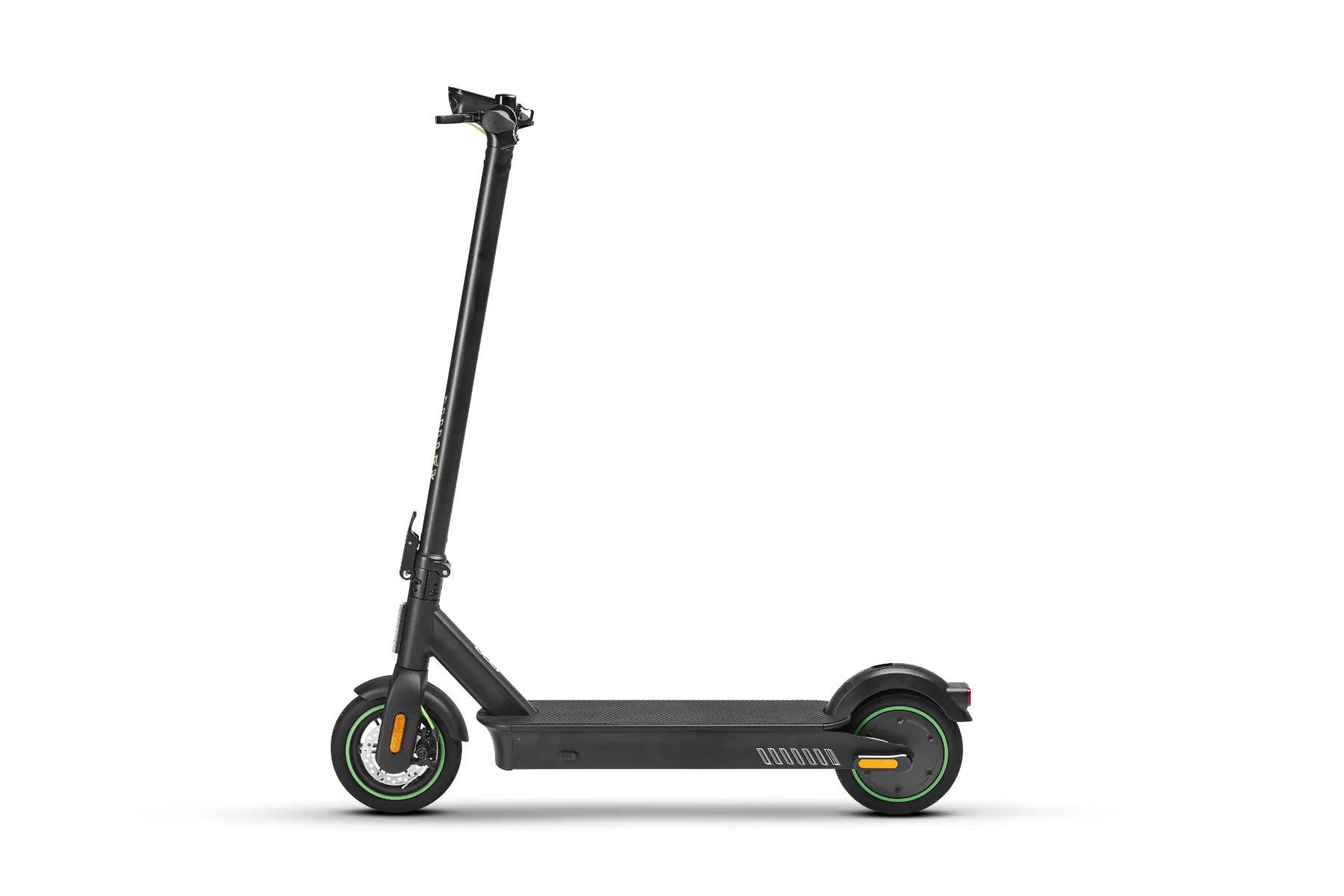 La conduite est stable et confortable grâce à ses roues de 8,5 pouces et son système de double frein (électrique à l’avant et à disque à l’arrière), assurant une maîtrise parfaite, même sur les routes urbaines irrégulières. Le châssis en alliage d’aluminium confère à la trottinette une solidité remarquable tout en restant légère à transporter — idéale pour être pliée et rangée facilement à la maison, au bureau ou dans les transports.